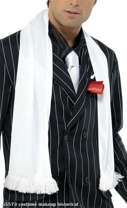 Journey to a time where even the most hardened criminals radiated class with this sharp white scarf featuring tasteful tassels on the ends.