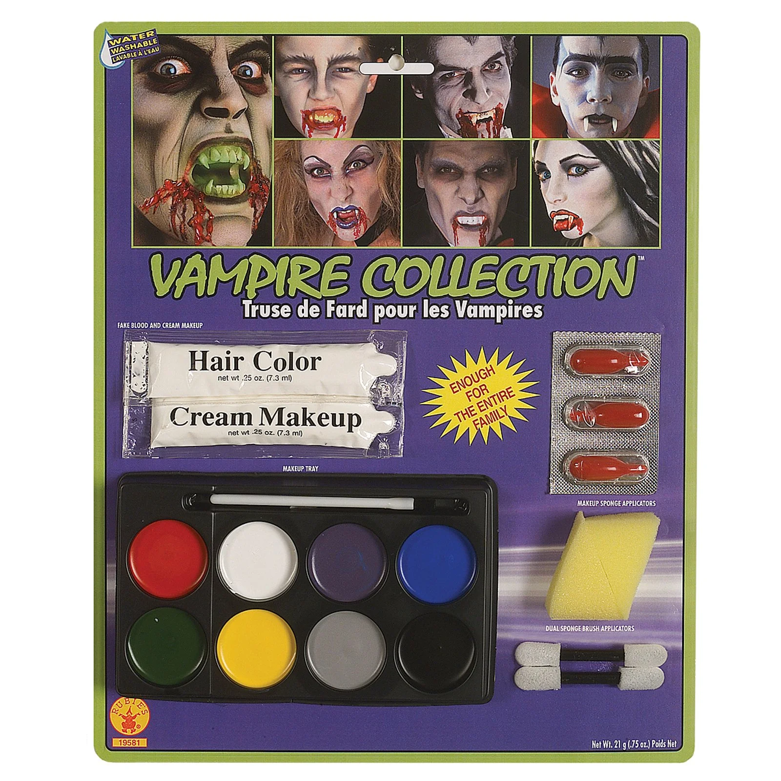 Need that extra bit of fright to finish off your vampire costume? This makeup kit will do the trick! Makeup kit includes an 8-color water-washable make-up palette, 1 packet of hair color, 1 packet of white cream make-up, 3 blood capsules, 2 mini make-up applicators, 2 make-up sponges and 1 make-up brush.